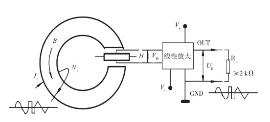 霍爾電流傳感器以霍爾元件為核心,用于隔離檢測(cè)電流的傳感器。當(dāng)電流流過(guò)一根導(dǎo)線時(shí),將在導(dǎo)線周?chē)a(chǎn)生磁場(chǎng),磁場(chǎng)的大小與流過(guò)導(dǎo)線的電流大小成正比,這一磁場(chǎng)可以通過(guò)軟磁材料來(lái)聚集,然后由霍爾元件來(lái)檢測(cè),用霍爾元件在磁芯氣隙處感應(yīng)原邊電流IP的大小和方向?;魻栐妮敵鲭妷?,經(jīng)過(guò)信號(hào)處理電路,使傳感器的輸出可以反映被測(cè)電流的大小。